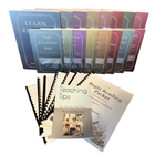 The system includes all the physical products in the Learn Reading curriculum: The Preschool Packet, Begin Reading Packet, all three Phonics Packets (Beginning, Intermediate, Advanced), both Print and Cursive Handwriting Help Packets, the Dyslexia Screening Kit, the full Teaching Tips Book, all 8 Learn Reading Workbooks, and all 8 Supplemental Readers (with 5 short stories for each of the 80 lessons).